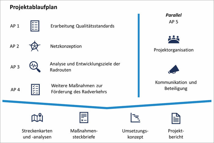Im weiteren Prozess wird noch geklärt, wie die Maßnahmenstrategie möglichst zielgerichtet erstellt werden kann. Die Maßnahmen sollen flexibel auf sich ändernde Rahmenbedingungen, vorhandene Ressourcen und Planungen eingehen können, beispielsweise wenn Straßen saniert werden.