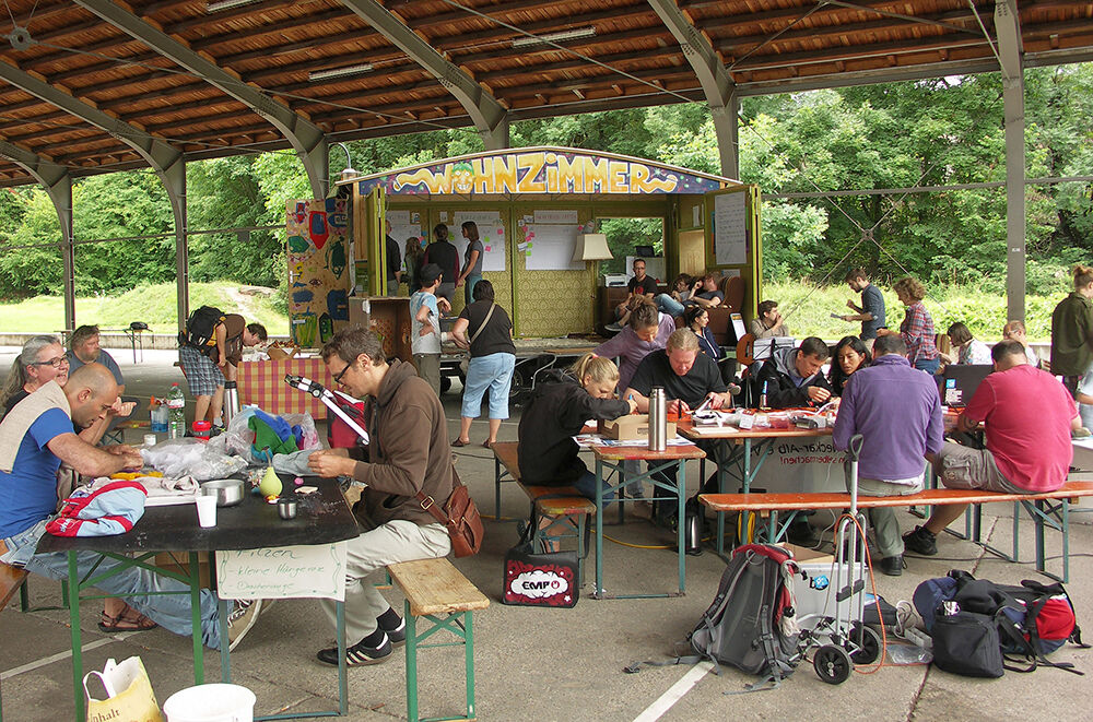 Bild: Stadtmuseum TübingenViele Veranstaltungen lockten die Bewohner im Sommer 2017 ans mobile Wohnzimmer. Von Theater über Live-Radio bis hin zu einem Markt für Selbermacher war ein abwechslungsreiches Programm geboten.