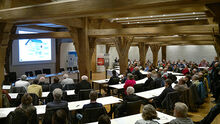 Wie können Dachbesitzerinnen und -besitzer mit Hilfe von Photovoltaikanlagen ihr Dach blau machen und so einen Beitrag zum Klimaschutz leisten? Diese Frage zog 100 Zuhörerinnen und Zuhörer in den vollbesetzten Ratssaal.