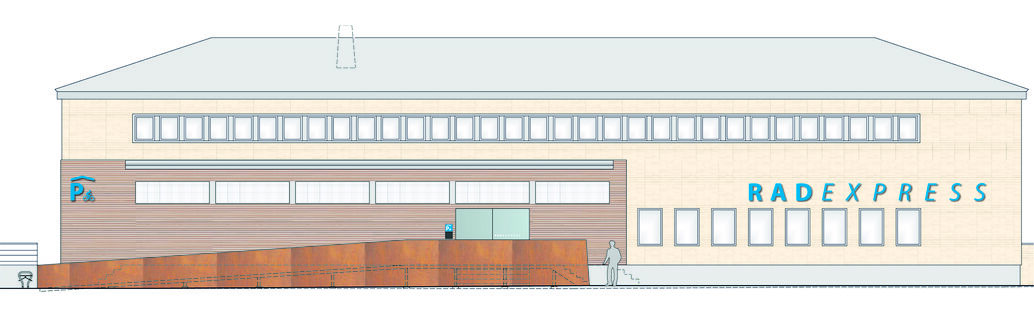 Optisch ist beim Radexpress der Charakter der alten Halle erhalten geblieben. Die bestehende Fassade wurde nicht verändert. Lediglich die Nordseite des Gebäudes wurde mit einer Holzschalung aufgewertet.