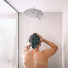 Duschdauer reduzieren und das Wasser beim Einseifen ausstellen. Vermeiden Sie Vollbäder. Installieren Sie einen Wasserspar-Brausekopf oder Durchflussbegrenzer. und stellen Sie alle Einhebelmischer (Wasserhähne) standardmäßig auf kalt (blau).