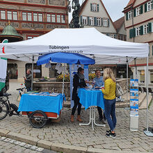Am 20. Oktober hat die Cleverländ-Roadshow bei ihrer Tour durch Baden-Württemberg in Tübingen Halt gemacht. Auf dem Marktplatz gab es verschiedene Informationsstände, an denen sich interessierte Bürgerinnen und Bürger bei Expertinnen und Experten zum Thema Energiesparen informieren konnten. Neben Energiespartipps rund um Heizung und Stromverbrauch gab es auch Angebote wie ein Smoothie-Fahrrad und ein Energie-Fahrrad, sowie ein Glücksrad mit Quiz, bei dem man verschiedene Preise gewinnen konnte. Die Roadshow gehört zu der Kampagne „CLEVERLÄND – Zusammen Energie sparen“, die vom Staatsministerium Baden-Württemberg entwickelt wurde und zum gemeinsamen Energiesparen aufruft.