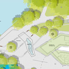 Zur Seeterrasse gab es in den letzten Monaten immer verschiedene Anregungen, sie stärker zu begrünen. Sie wurde  deshalb noch einmal weiterentwickelt. Im Vergleich zum Baubeschluss 2019 wurden insgesamt 14 Baumpflanzungen auf der Terrasse, im Übergangsbereich zum ZOB und im Randbereich zum Park ergänzt.
