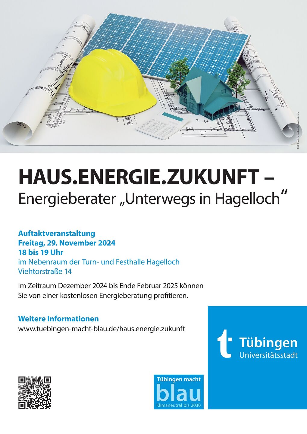 Bei der Auftaktveranstaltung „Haus.Energie.Zukunft – Unterwegs in Hagelloch“ am Freitag, 29. November 2024, um 18 Uhr im Nebenraum der Turn- und Festhalle Hagelloch, Viehtorstraße 14, 72070 Tübingen können Sie sich persönlich über die Ziele und den Ablauf der Kampagne informieren, die Energieberaterinnen und Energieberater kennenlernen und bei Interesse auch direkt einen Beratungstermin vereinbaren.