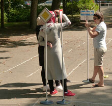 Hannes Wolter von der ttg machte die acht Frauen mit der deutschen Straßenverkehrsführung vertraut. Mit Hilfe eines Kurzfilms auf Deutsch und Arabisch waren die Bedeutungen von Straßenregeln und -schildern schnell erklärt. Nach der theoretischen Einführung ging es für die Teilnehmerinnen zum praktischen Üben auf den Bolzplatz hinter der Eberhardskirche.