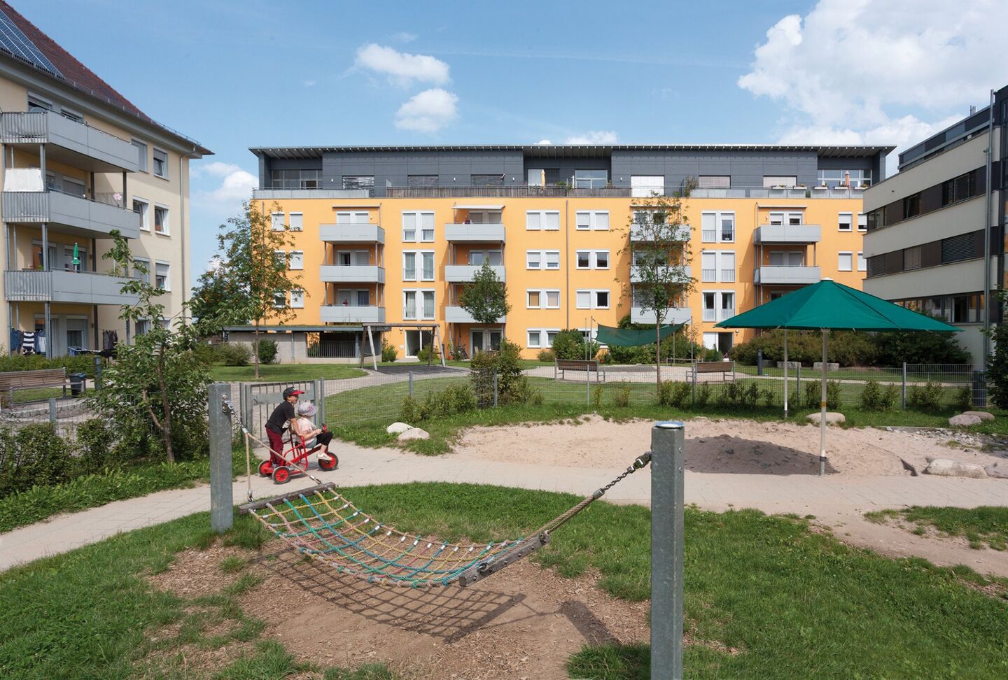 Altbauten wurden kernsaniert und einzelne Neubauten, in denen auch Gewerbe ansässig ist, integriert. Neben kostengünstigen Mietwohnungen finden sich im Quartier, das zwischen der Stuttgarter Straße und der Königsberger Straße liegt, auch gehobene Wohnformen einschließlich Eigentumswohnungen durch private Baugemeinschaften oder Bauträger. Große Innenhöfe stehen für gemeinschaftliche Nutzungen zur Verfügung. Zum Quartier gehören ein städtischer Kindergarten, ein Bürgertreff und weitere soziale Einrichtungen wie die NaSe (Nachbarschaftliche Selbsthilfe).