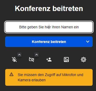 - Im Vordergrund öffnet sich ein Fenster, indem Sie gebeten werden, dem Browser Zugriff auf Ihre Kamera und Ihr Mikrofon zu geben. Klicken Sie hier auf „Zulassen“, denn für das Meeting benötigen Sie Bild und Ton.