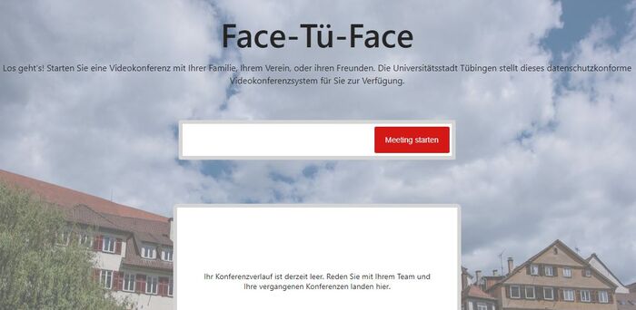 - Um ein Meeting zu erstellen, klicken Sie auf https://face-tue-face.de/ . Es erscheint diese Seite: