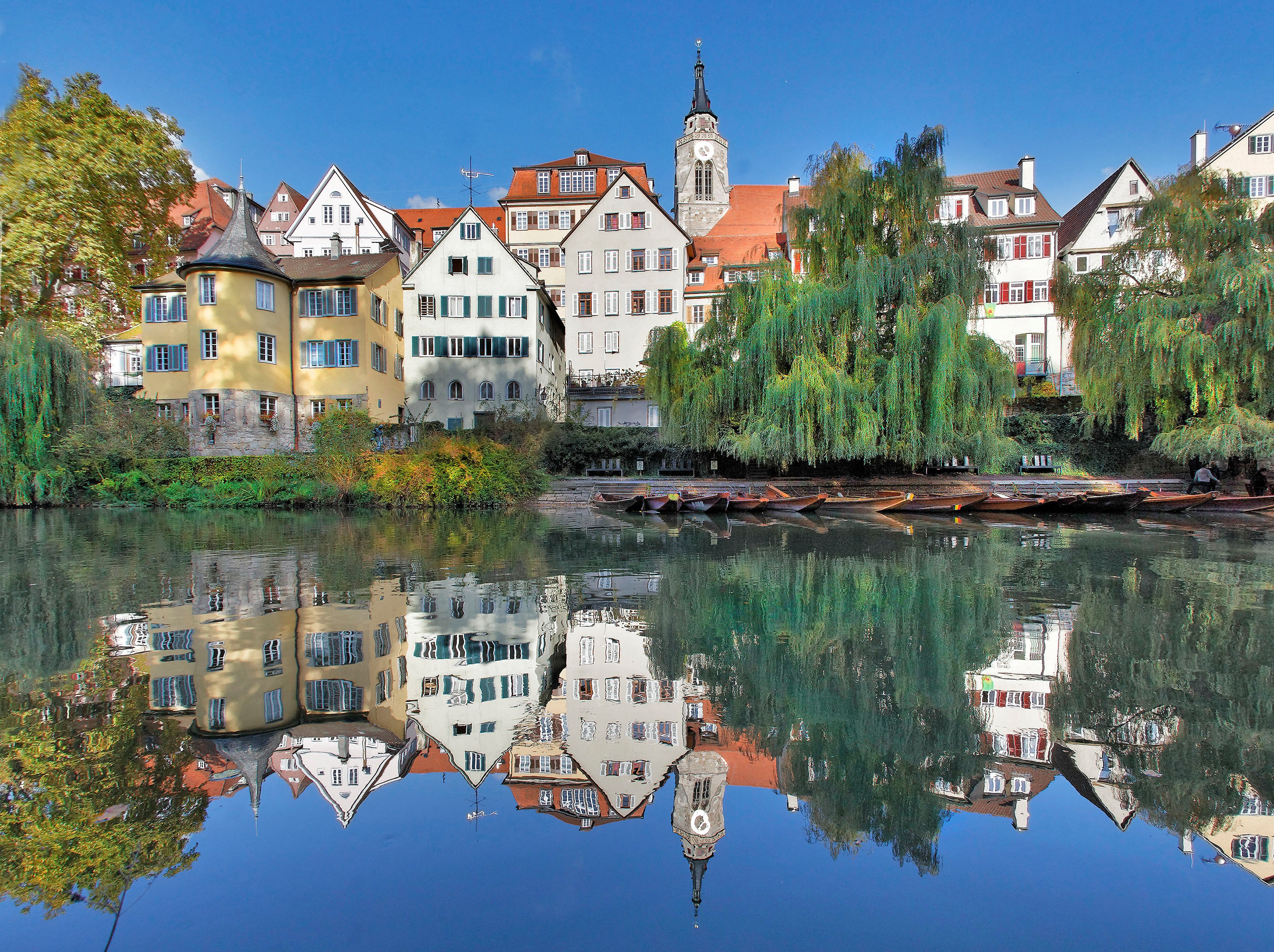 Von der Platanenallee, die mit ihren beinahe zweihundert Jahre alten Bäumen eine der schönsten Alleen im Lande ist, hat man den besten Blick auf die berühmte Tübinger Neckarfront.