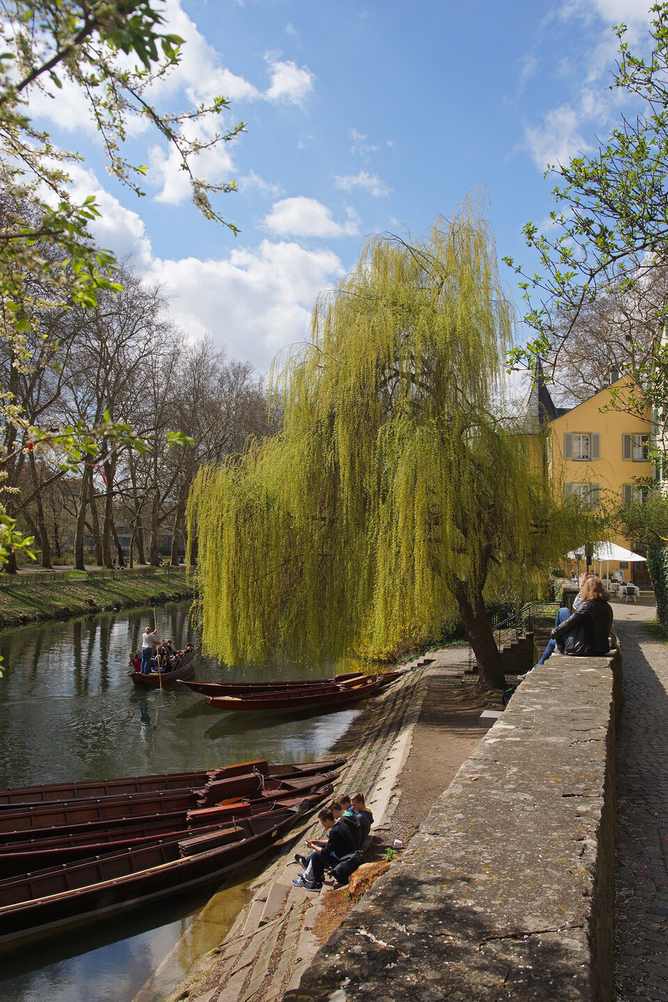 Alter Stadtgraben zwischen äußerer und innerer Stadtmauer, die hier – wie staufische Buckelquader bei der Neckarbrücke beweisen – bis ins 13. Jahrhundert zurückgeht. Auf einem aus der Mauer vorspringenden Wehrturmsockel wurde im späten 18. Jahrhundert ein Haus errichtet, das als Hölderlinturm bekannt wurde. Heute ist der Zwingel ein beliebter Studententreff mit Blick auf die Platanenallee.