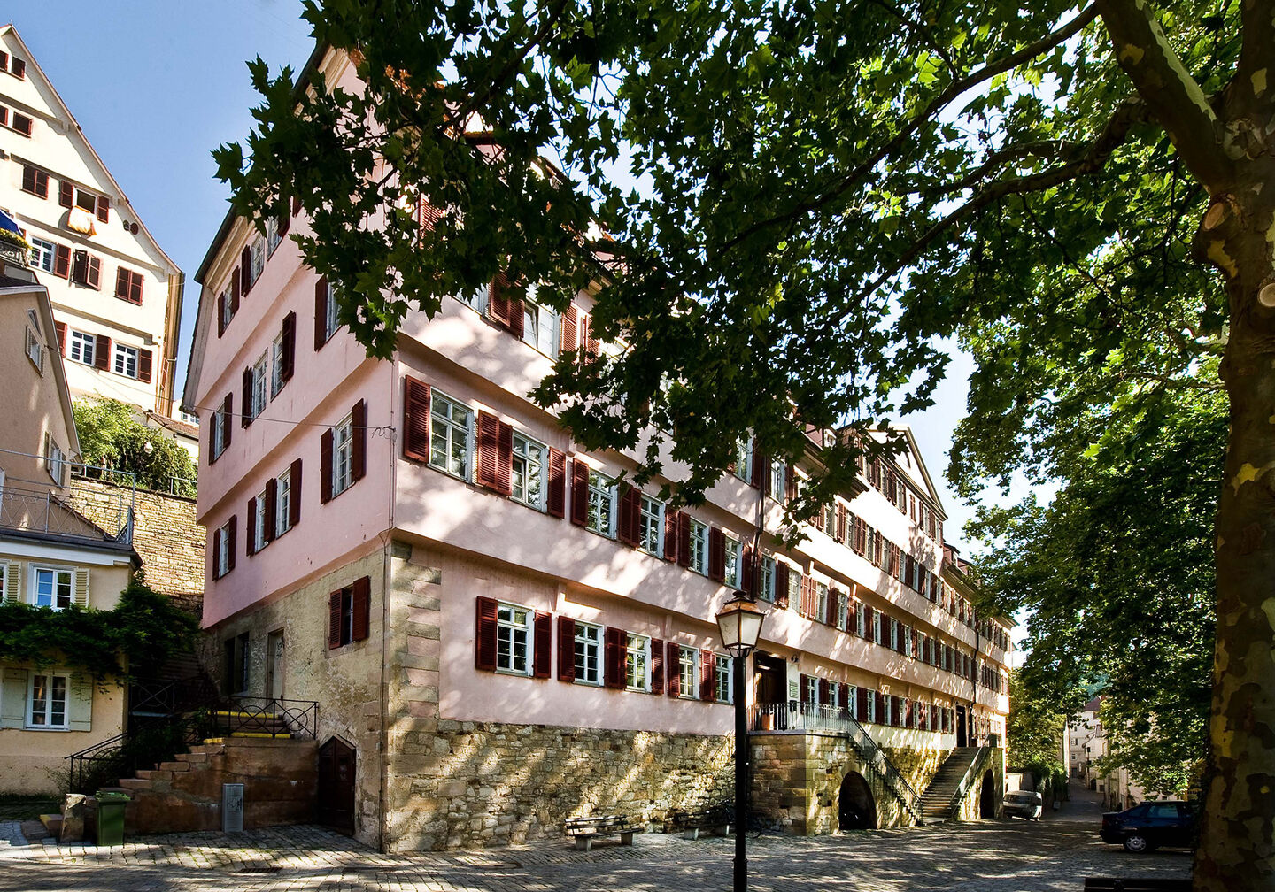 Die Burse wurde 1478 bis 1482 – unmittelbar nach der Universitätsgründung – als Studentenwohnhaus und Lehranstalt errichtet. Hier lehrte der Humanist und Reformator Philipp Melanchthon bis zu seiner Berufung nach Wittenberg 1518, an ihn erinnert eine Gedenktafel. 1803 bis 1805 wurde das Gebäude im Stil des Klassizismus zum ersten Tübinger Klinikum umgebaut. Einer der ersten Patienten war Friedrich Hölderlin, der nach einer 231 Tage dauernden Behandlung am 3. Mai 1807 als unheilbar entlassen wurde.