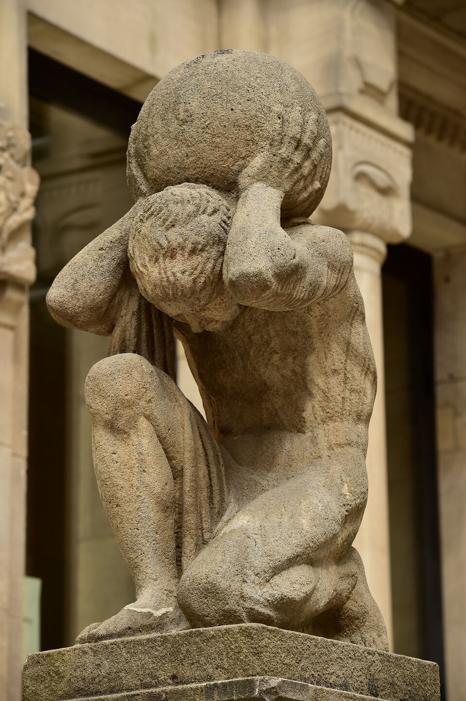 Der Atlas, eine Figur der griechischen Mythologie, ist dazu verdammt, den Himmel für alle Zeiten auf seinen Schultern zu tragen. Vielleicht ist der Atlas am Rathaus, weil hier schwer an der politischen Verantwortung getragen wird.