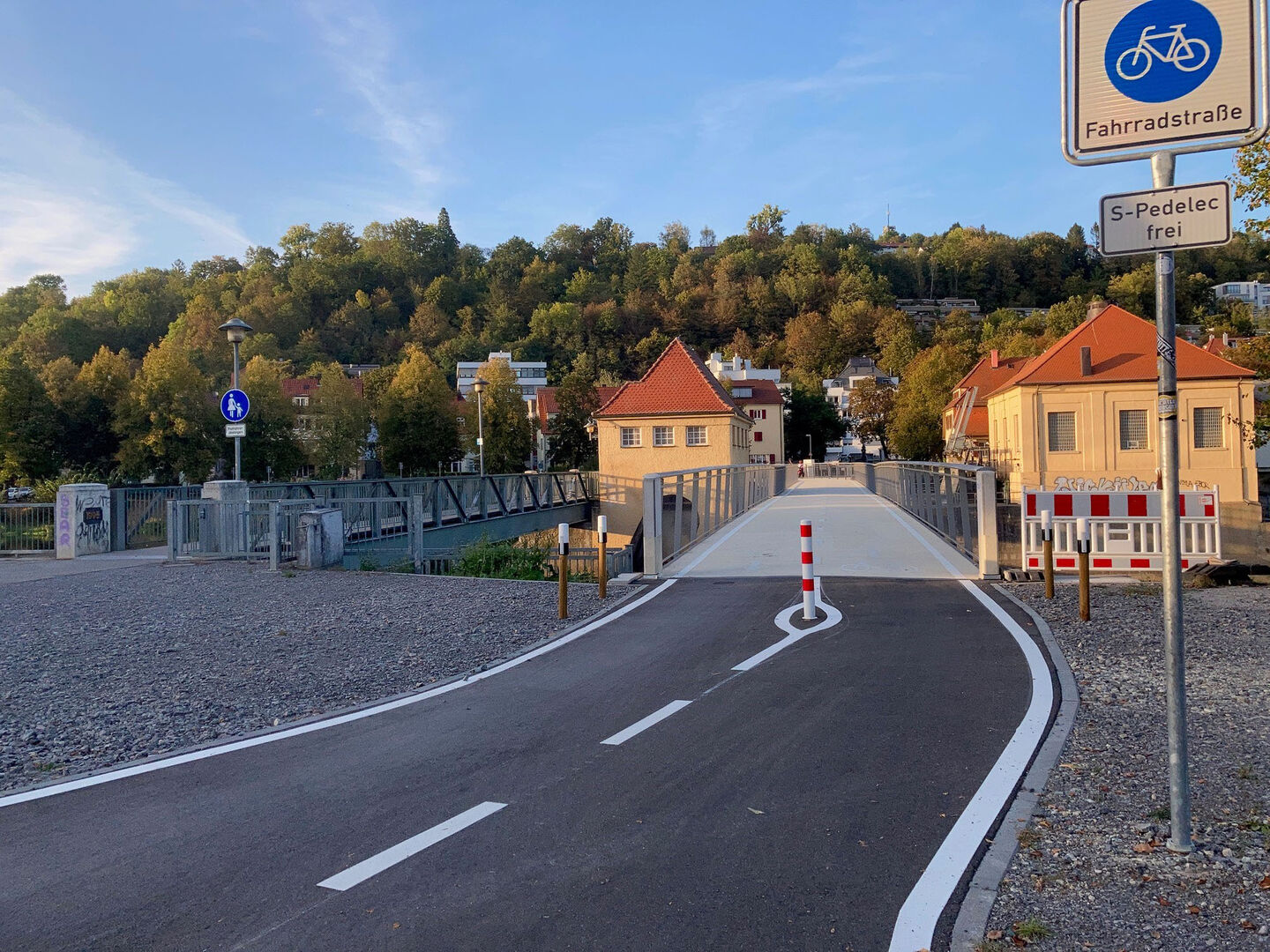 - Am Stauwehr in der Bismarckstraße haben Radfahrende jetzt eine eigene Brücke, die Radbrücke Ost. Sie können dort bequem über den Neckar radeln und müssen ihr Fahrrad nicht mehr über die Fußgängerbrücke schieben.