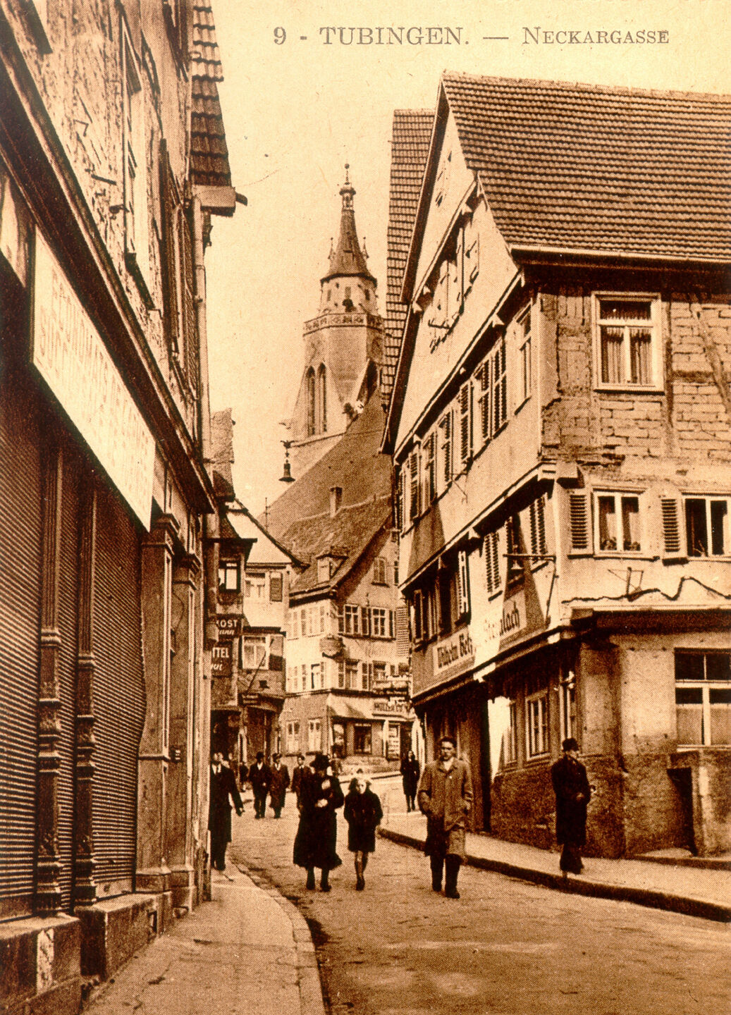 Die Neckargasse ist mehrfach mit der Geschichte der Juden verknüpft. So wohnte der spätere Erfolgsschriftsteller Berthold Auerbach 1832 als Student in der Nummer 22. An den jüdischen Festtagen wanderte er nach Wankheim, weil es in der Stadt keine koschere Kost gab. Sein freundschaftlicher Verkehr mit Ludwig Uhland, Hermann Kurz und einigen Stiftlern war frei von antisemitischen Ressentiments.