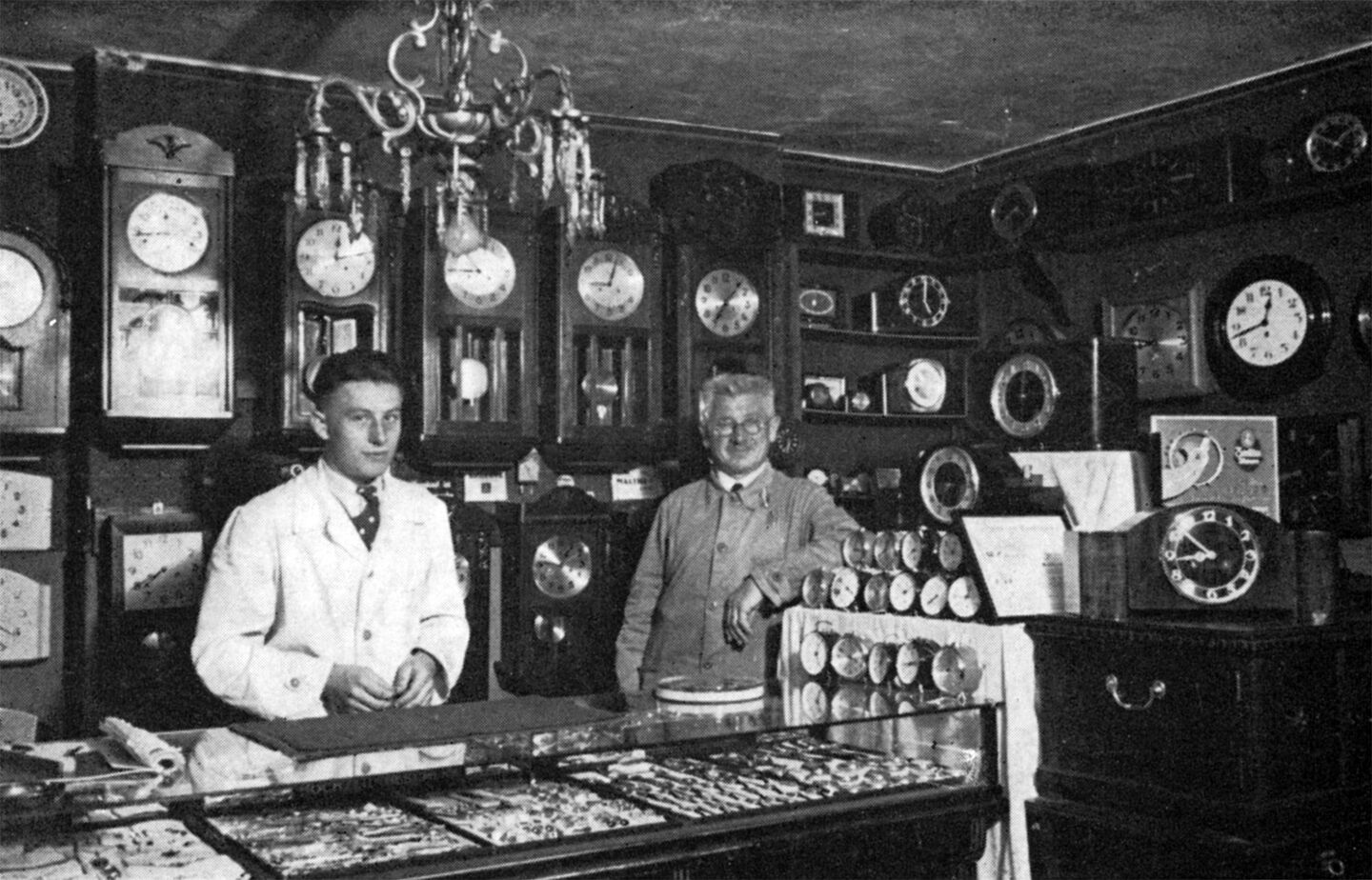 Der Uhrmachermeister Otto Schott aus der Langen Gasse (rechts) wurde 1928 für die linksliberale Deutsche Demokratische Partei (DDP) in den Gemeinderat gewählt und 1933 im Zuge der „Gleichschaltung“ zum Rücktritt gezwungen. Foto: Stadtarchiv Tübingen/Tübinger Blätter 1979