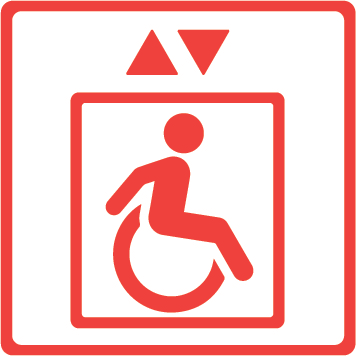 Piktogramm „Aufzug mit Rollstuhl nutzbar“