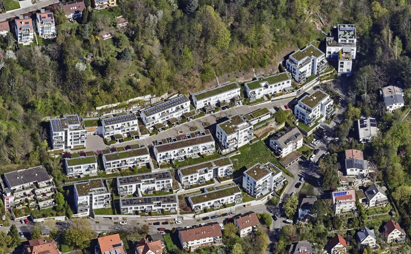21 Reihenhäuser und elf Mehrfamilien sind am Österberg oberhalb des Neckars entstanden. Insgesamt haben rund 270 Menschen in rund 110 Wohnungen ein neues Zuhause gefunden.