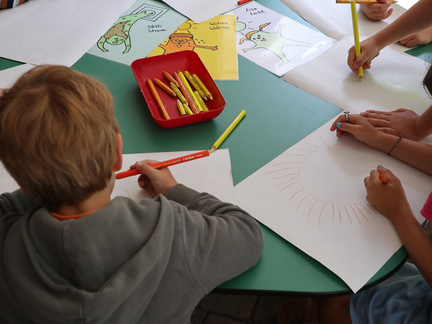 In einem rund einstündigen Programm verwandelten sich im Juli 2021 einige Kinder aus den Tübinger Kinderhäusern zu Energieforscher_innen. Sie machten sich auf die Suche nach „Lisa Licht“, „Wilma Wärme“ und „Steffi Strom“. Dabei lernten sie spielerisch, welches Multi-Talent die Sonne ist, und erlebten die Sonnenkinder „Lisa Licht“ und „Wilma Wärme“ hautnah. Im Zentrum standen Fragen wie: Woher kommt das Licht am Tag? Was passiert, wenn Licht auf verschiedene Farben trifft? Wohin wandert der Schatten? Was passiert, wenn die Sonne auf Schokolade trifft? Außerdem wurde veranschaulicht, wie „Lisa Licht“ mit Hilfe eines Photovoltaik-Spielzeugautos zu „Steffi Strom“ verwandelt werden kann und wo die Kinder im Kinderhaus, aber auch zu Hause Strom sparen können.