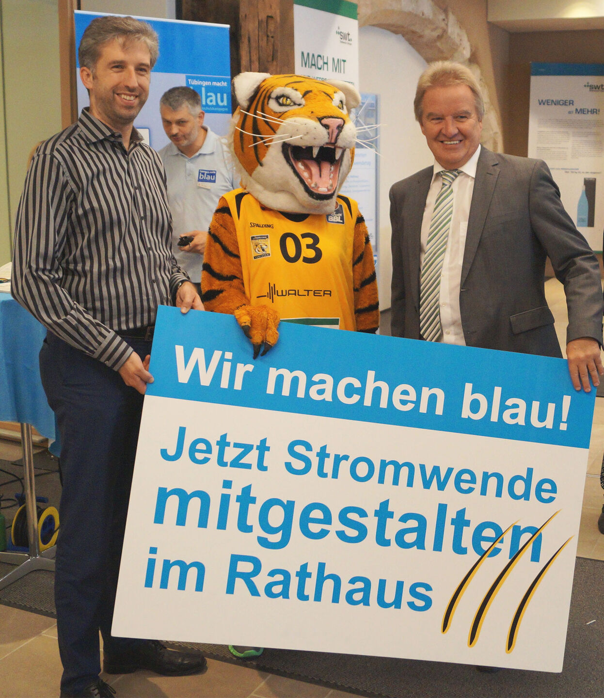 Aussteller des Energiewendetages waren: Stadtwerke Tübingen, Hartmann Energietechnik Rottenburg-Oberndorf, Geckler Elektrotechnik Ofterdingen, Arbeitskreis Energie Tübingen, Caritas Stromsparhelfer und die städtische Stabsstelle Umwelt- und Klimaschutz.