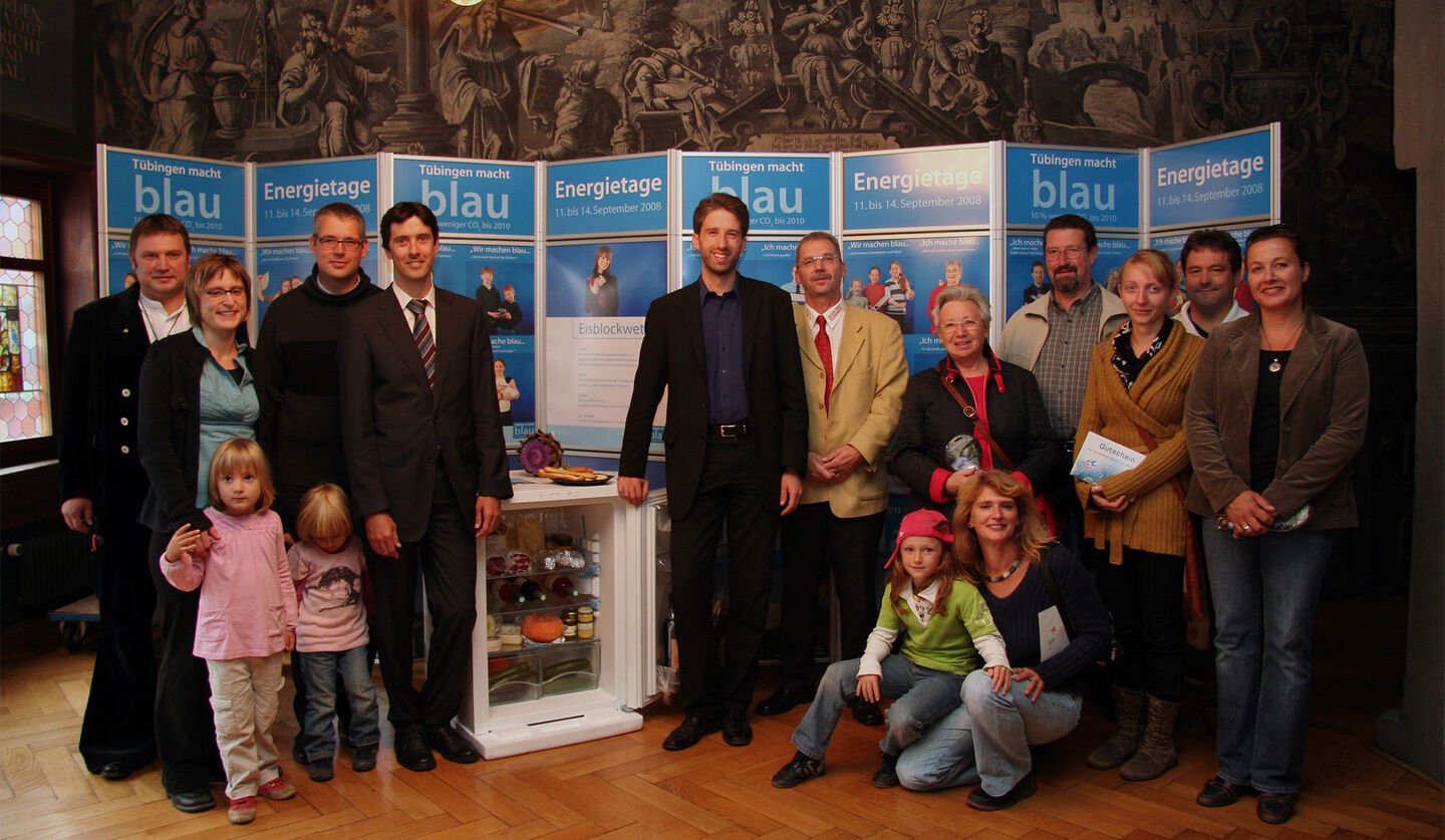 Der Gewinner Jochen Schumacher kam mit seiner ganzen Familie, um den Hauptpreis, einen Miele-Kühlschrank der Energieeffizienzklasse A++ voller umbrisch-provenzalischer Köstlichkeiten, in Empfang zu nehmen. Der zweite und dritte Preis – je eine Jahreskarte für die Tübinger Bäder und ein Eco-Fahrtraining der Tübinger Fahrschulen gingen an Inga Schwarz aus Tübingen und Jochen Stoß aus Dußlingen. Die anderen Gewinner erhielten eine LED-Taschenlampe mit Handkurbel.