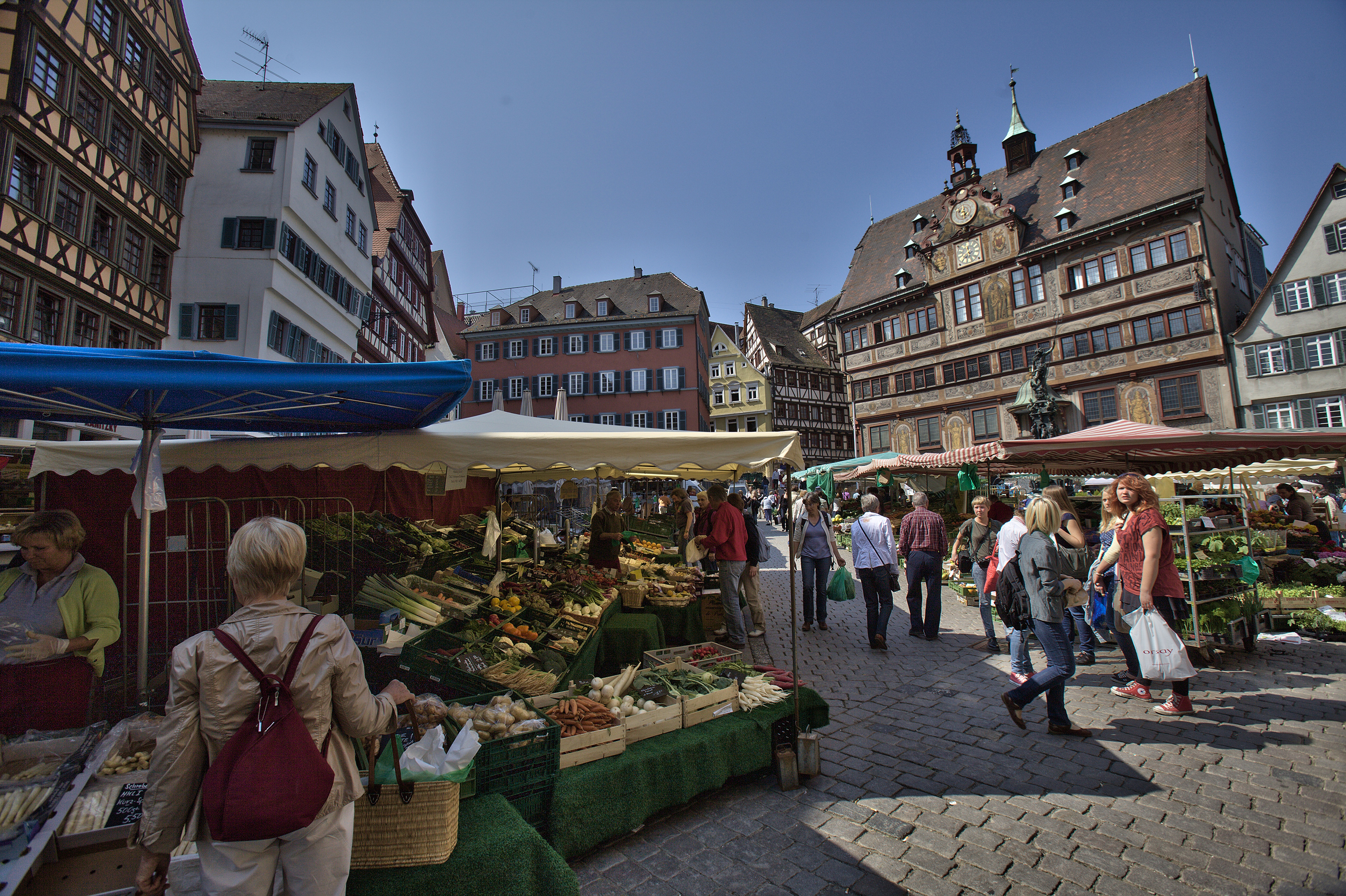 Wochenmarkt vor dem Tübinger Rathaus