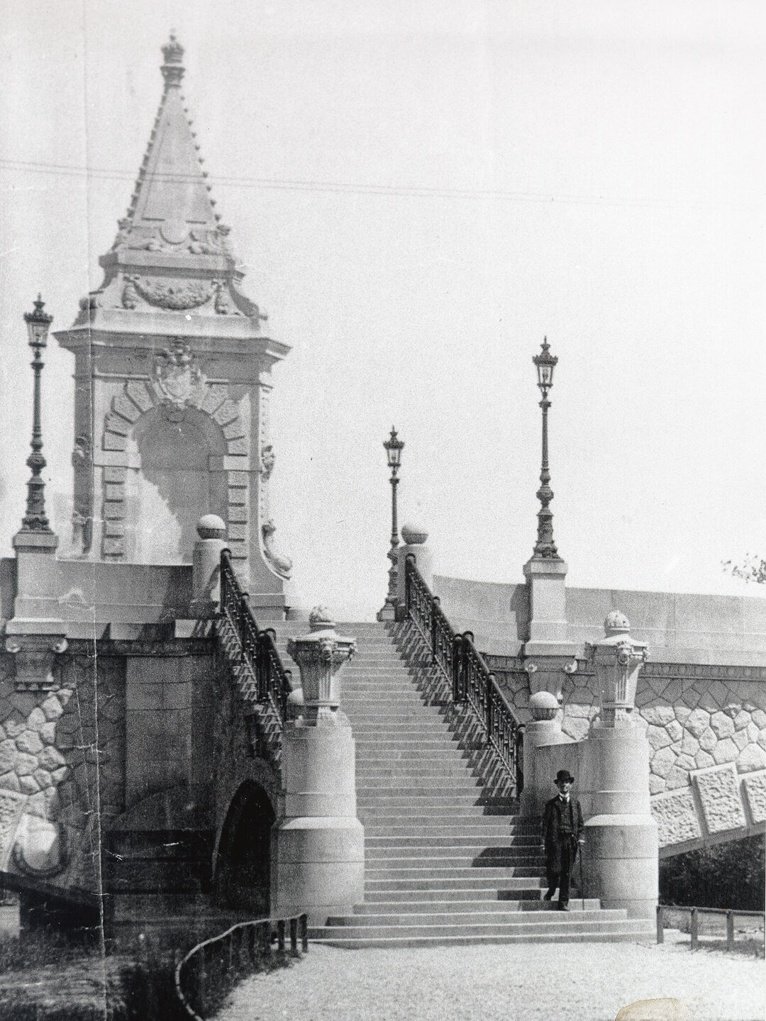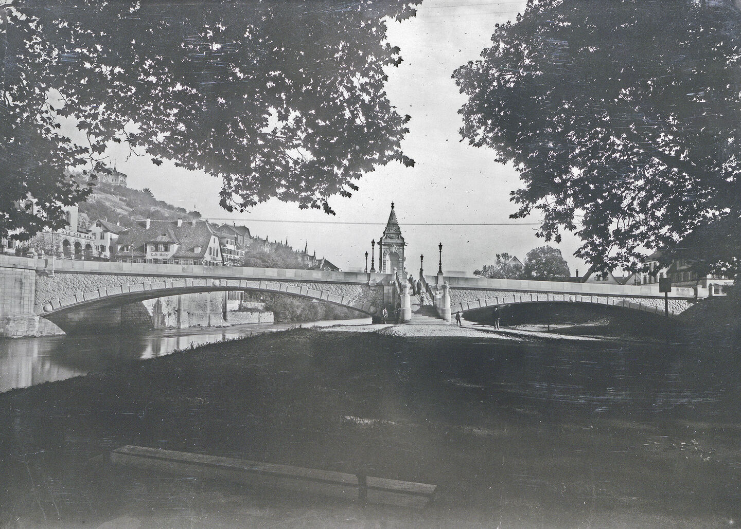 Die neue Neckarbrücke wurde bis 1901 nach den Plänen von Karl Leibbrand und Heinrich Halmhuber ausgeführt. Sie hatte zwei elegant geschwungene Bögen und war im Kern aus modernem Stampfbeton. Ihre Breite (13,70 Meter) und Tragkraft waren so berechnet, dass darauf auch eine Straßenbahn verkehren konnte – ein futuristischer Plan, der bis heute auf seine Verwirklichung wartet.