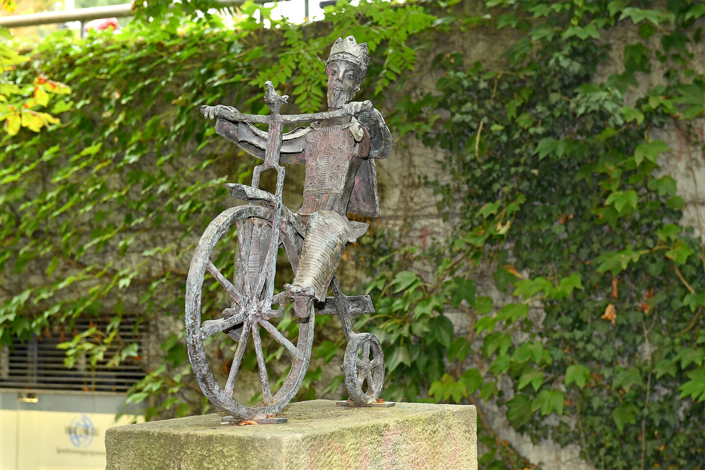 Die Skulptur lässt Spielraum für viele verschiedenen Interpretationen: der bescheidene Monarch, der die Freiheit auf dem Fahrrad genießt; die Entschleunigung in einer hektischen Welt; der Radfahrer, der in Tübingen König ist.