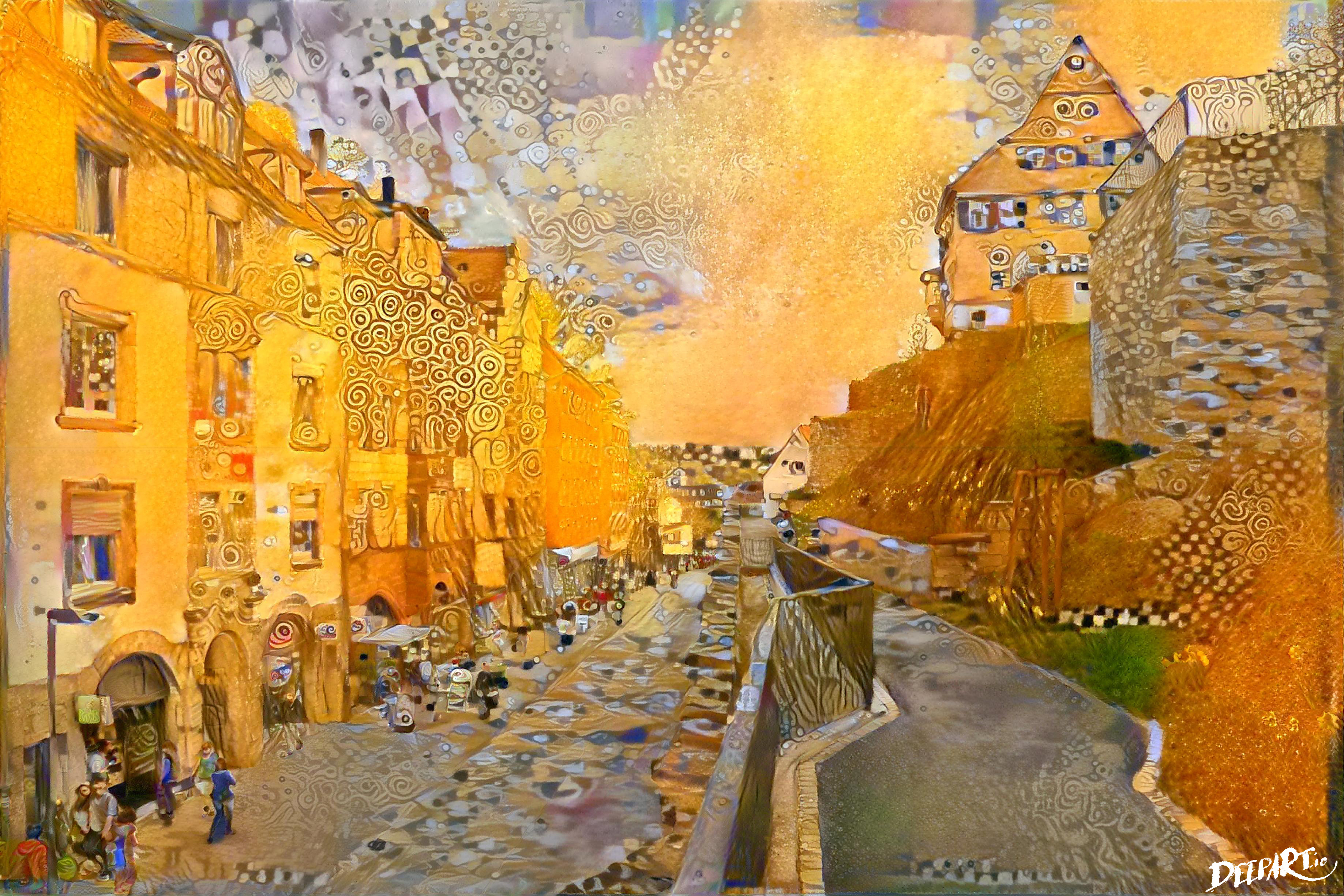 Die Mühlstraße, wie Gustav Klimt sie vielleicht gemalt hätte, ist eine der außergewöhnlichen Stadtansichten. Bild: Jens Klatt, Bildumwandlung: www.deepart.io