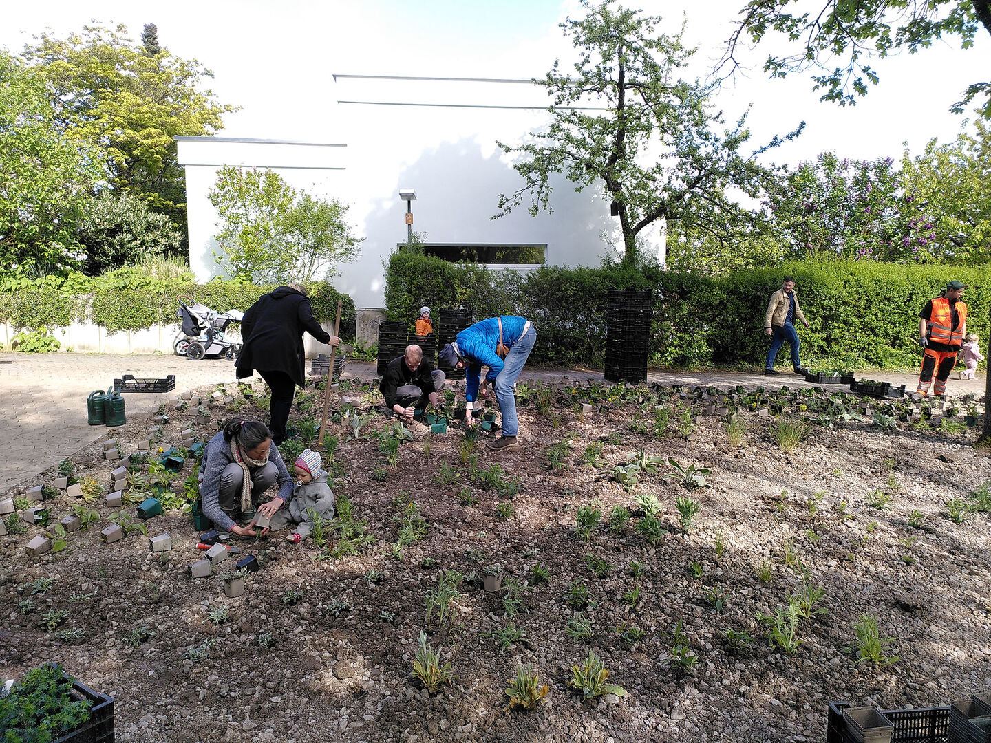 Auf einer Wiese der GWG wurden im Herbst 2024 gemeinsam mit Interessierten aus der Nachbarschaft Blumenzwiebeln gesteckt. Die bunten Blumen sollen die Menschen zu Beginn des Frühlings erfreuen.