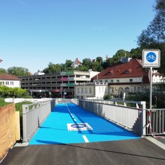 Die Durham-Brücke, früher Radbrücke Mitte genannt, wurde über Landesmittel aus dem Förderprogramm LGVFG-BW finanziert.