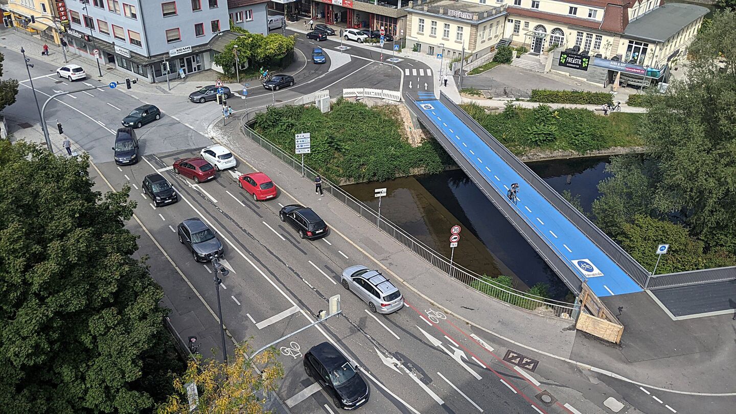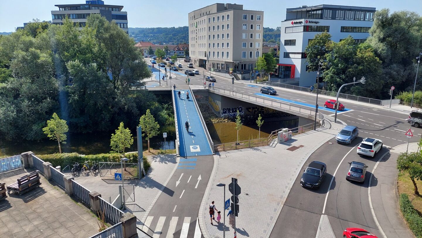 Bild: Thomas DingesBild: Universitätsstadt TübingenBild: Universitätsstadt TübingenDie Steinlachbrücke (Friedrichstraße Tübingen) vom Dach des Ibis-Hotels aus. Bild: Hans-Jörg Schweizer
