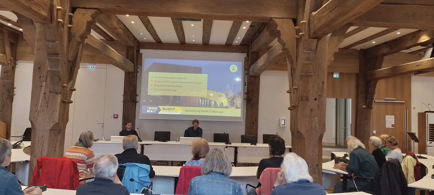 Am 27. Juli 2023 fand im Rathaus ein Infoabend zum Thema Wärmepumpen statt. Vor knapp 50 Teilnehmenden erläuterte Dr. Jakob Sierig, Experte für Wärmepumpen und Energietechnik, was bei der Installation von Wärmepumpen in Bestandsgebäuden zu beachten ist. Energieberater Daniel Herold von der Universitätsstadt Tübingen präsentierte die aktuellen Förderprogramme und gesetzlichen Rahmenbedingungen rund um das Thema Wärmepumpen. Die Experten haben anschließend zahlreiche Fragen rund um die Installation von Wärmepumpen beantwortet.