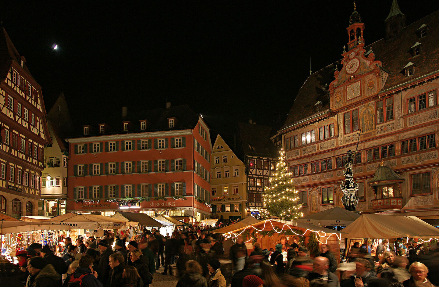 Der Tübinger Weihnachtsmarkt am dritten Adventswochenende ist der glanzvolle Abschluss des Jahres. Ihn gibt es schon seit 1974. Über 300 lichtgeschmückte Stände von gewerblichen Anbietern, Vereinen und gemeinnützigen Organisationen schlängeln sich an allen drei Tagen durch die Altstadtgassen und machen Lust zum Flanieren, Schauen, Genießen und Kaufen. Auf dem Marktplatz und am Nonnenhaus gibt es ein Kinderkarussell, auf dem Marktplatz findet am Sonntag Kindertheater statt. Ein Höhepunkt ist die Aufführung der Feuerzangenbowle am Freitag um 19 Uhr auf dem Haagtorplatz.