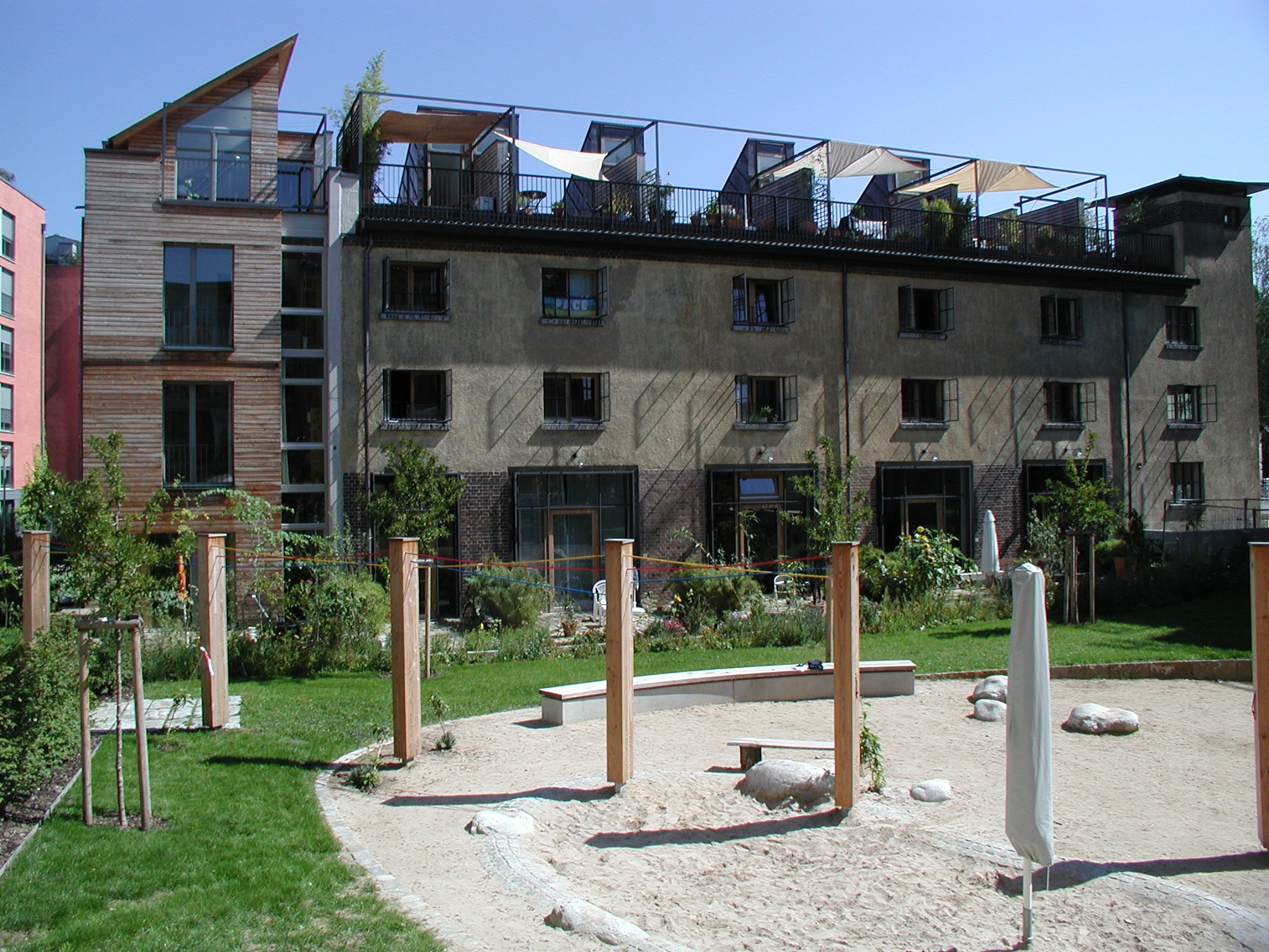 Der Lorettoplatz diente vor der Umwandlung als Exerzierplatz für die benachbarten Kasernen, die jetzt zu Eigentumswohnungen (rechts im Bild) umgebaut sind.