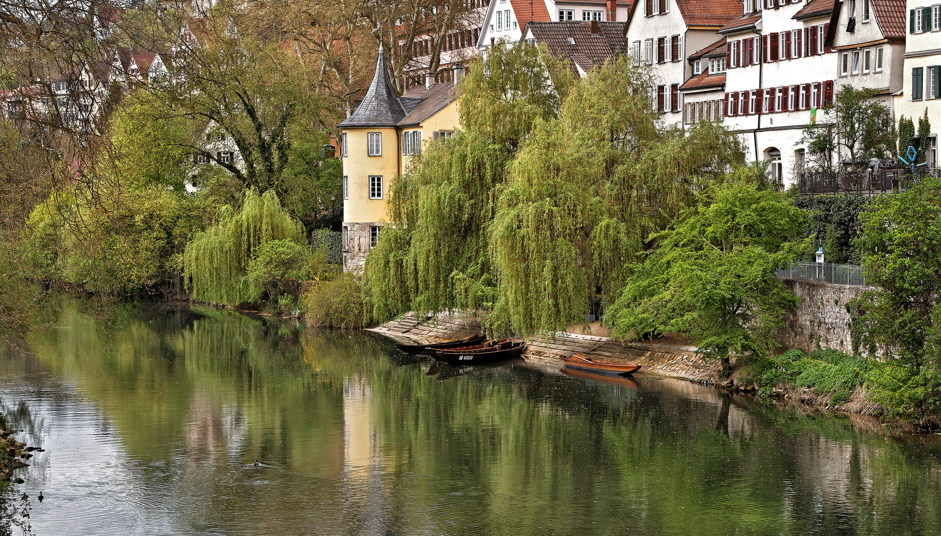 Von der Platanenallee, die mit ihren beinahe zweihundert Jahre alten Bäumen eine der schönsten Alleen im Lande ist, hat man den besten Blick auf die berühmte Tübinger Neckarfront.