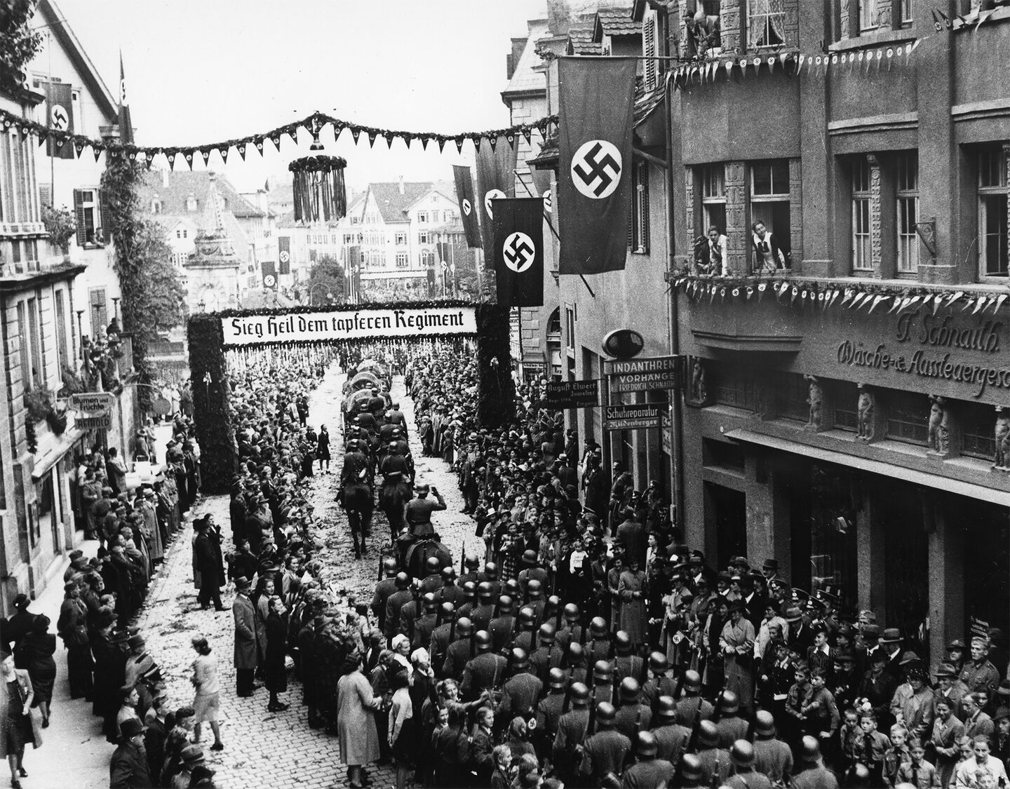 Rückkehr von Tübinger Wehrmachtseinheiten aus dem besiegten Frankreich, September 1940. Foto: Stadtarchiv Tübingen/Walter Kleinfeldt