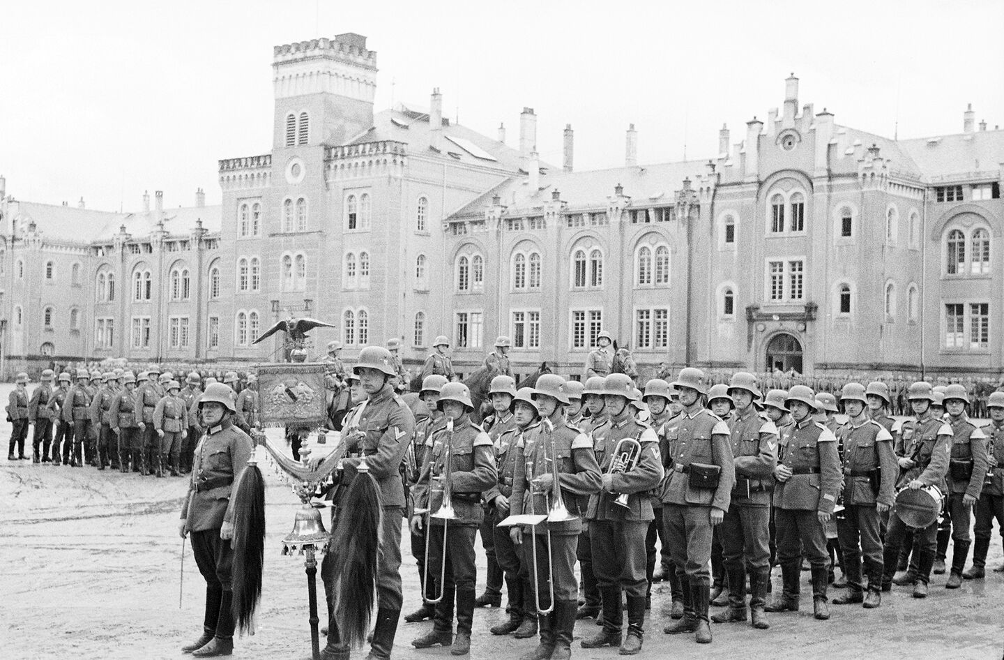 Wehrmachtssoldaten vor dem Mannschaftsgebäude der späteren Thiepval-Kaserne, Oktober 1935. Foto: Stadtarchiv Tübingen/Walter Kleinfeldt