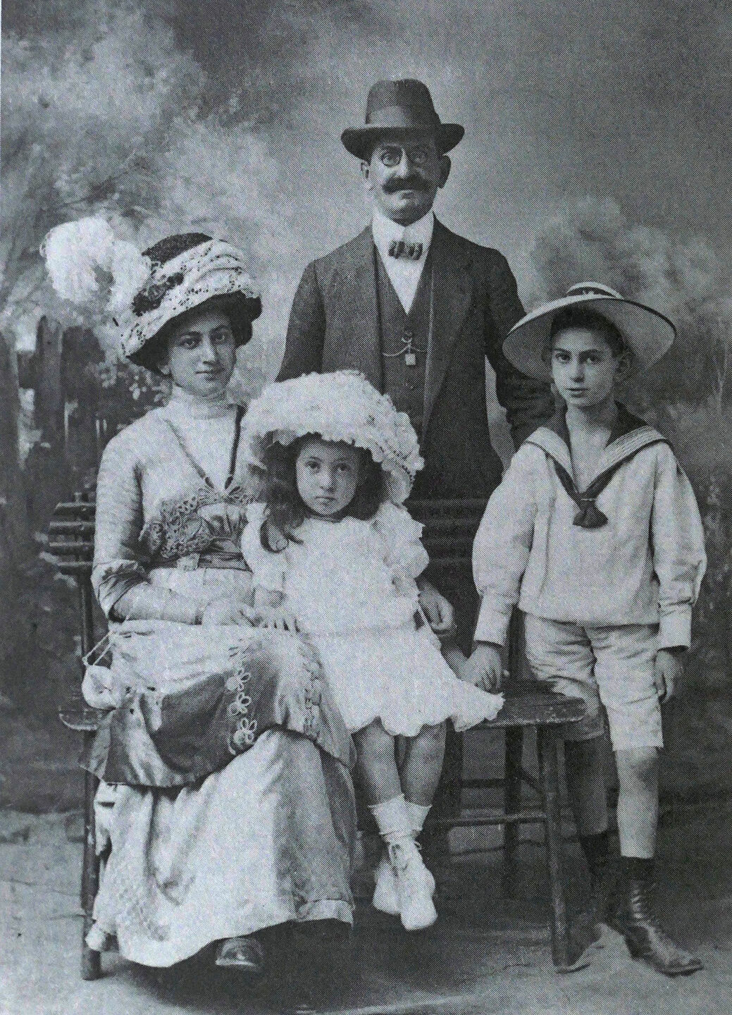 Von links nach rechts vorne: Leopold Hirsch mit seiner Tochter Lore Silbermann und der Schwiegertochter Stephanie Hirsch, geb. Spangenthal und den drei Enkelinnen Janette, Carol und Monica.
