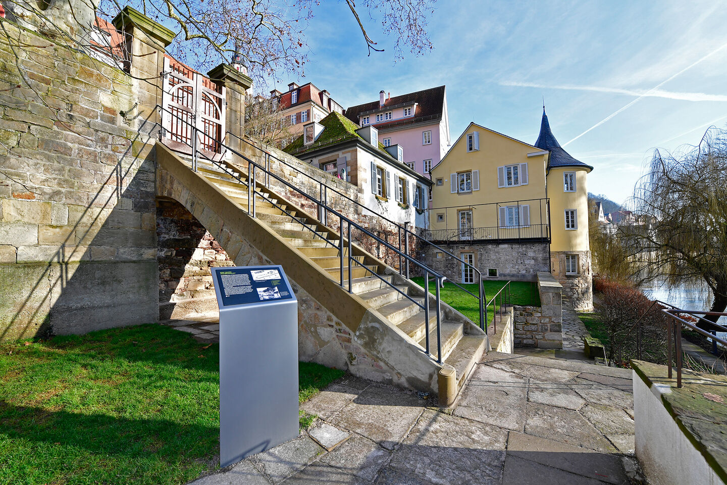 - Der Hölderlinturm ist aufgrund seiner Lage in der Altstadt nur über Treppen erreichbar. Der Zutritt zum Trauungstermin im Garten erfolgt über das große Gartentor am Bursaplatz.