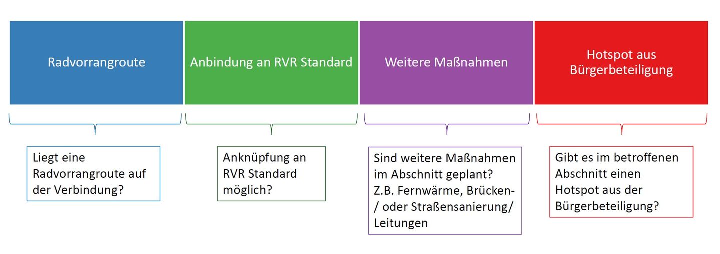 Das Blaue Band soll nahtlos entlang der Radvorrangrouten erweitert werden. Die Umsetzung wird dabei auf andere Bauvorhaben wie Straßen- und Brückensanierungen oder Fernwärmeausbau abgestimmt. Auch die Rückmeldungen aus der Bürgerbeteiligung spielen eine entscheidene Rolle bei der Priorisierung. Auf dem Weg zu einem lückenlosen Netz wird es auch Lücken geben, denn nicht alle Bauvorhaben schließen an das Blaue Band an.