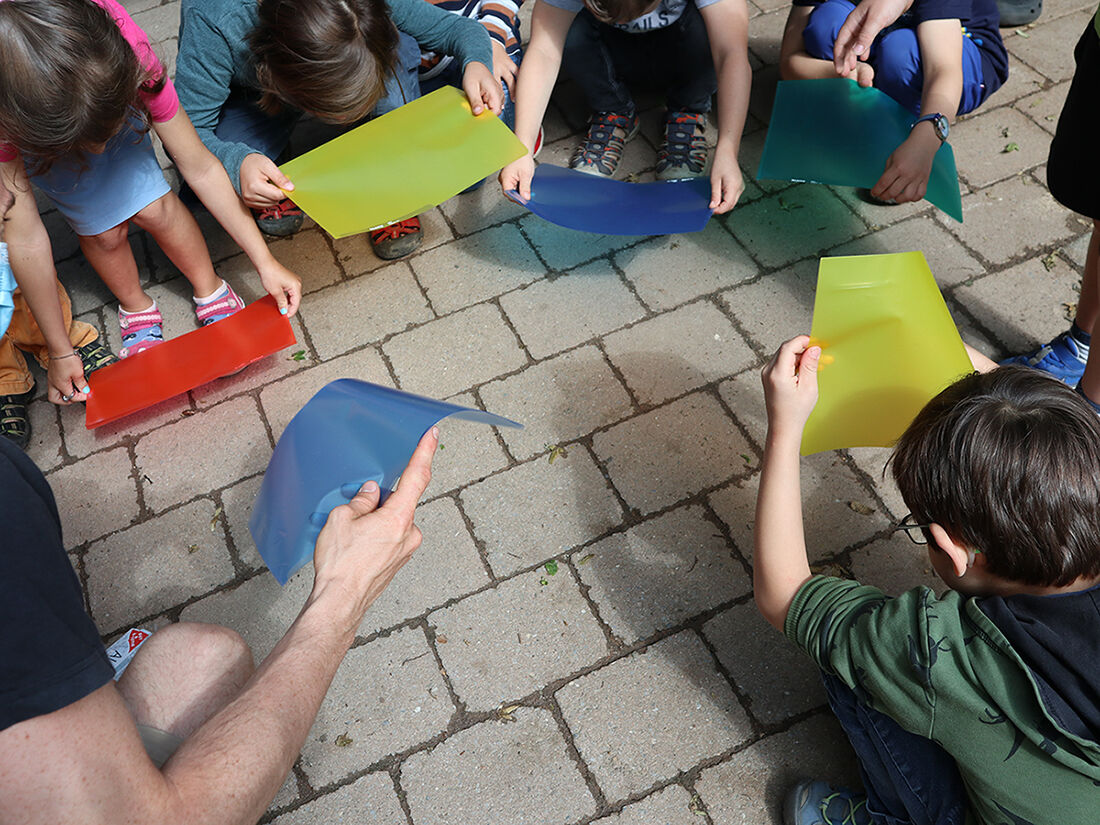 In einem rund einstündigen Programm verwandelten sich im Juli 2021 einige Kinder aus den Tübinger Kinderhäusern zu Energieforscher_innen. Sie machten sich auf die Suche nach „Lisa Licht“, „Wilma Wärme“ und „Steffi Strom“. Dabei lernten sie spielerisch, welches Multi-Talent die Sonne ist, und erlebten die Sonnenkinder „Lisa Licht“ und „Wilma Wärme“ hautnah. Im Zentrum standen Fragen wie: Woher kommt das Licht am Tag? Was passiert, wenn Licht auf verschiedene Farben trifft? Wohin wandert der Schatten? Was passiert, wenn die Sonne auf Schokolade trifft? Außerdem wurde veranschaulicht, wie „Lisa Licht“ mit Hilfe eines Photovoltaik-Spielzeugautos zu „Steffi Strom“ verwandelt werden kann und wo die Kinder im Kinderhaus, aber auch zu Hause Strom sparen können.