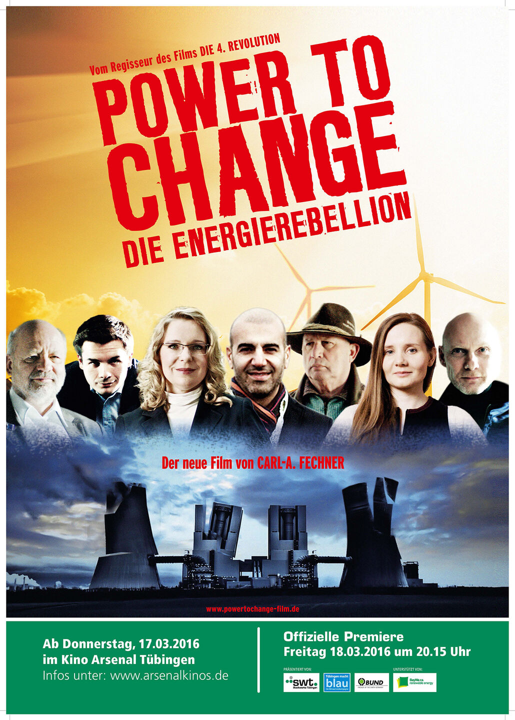 Haben wir die Kraft, die Energiewende tatsächlich zu schaffen? Wer hat die Macht dazu? Woraus schöpfen wir unsere Energie für die Energiewende vor Ort? Vor dem Hintergrund des Klimaprotokolls von Paris sind diese Fragen aktueller denn je. Antworten liefert Regisseur Carl-A. Fechner in seinem Kinofilm „Power to Change – Die Energierebellion". Kurzweilig, spannend, faszinierend und ohne moralischen Zeigefinger macht er das Jahrhundertprojekt Energiewende filmisch erlebbar.